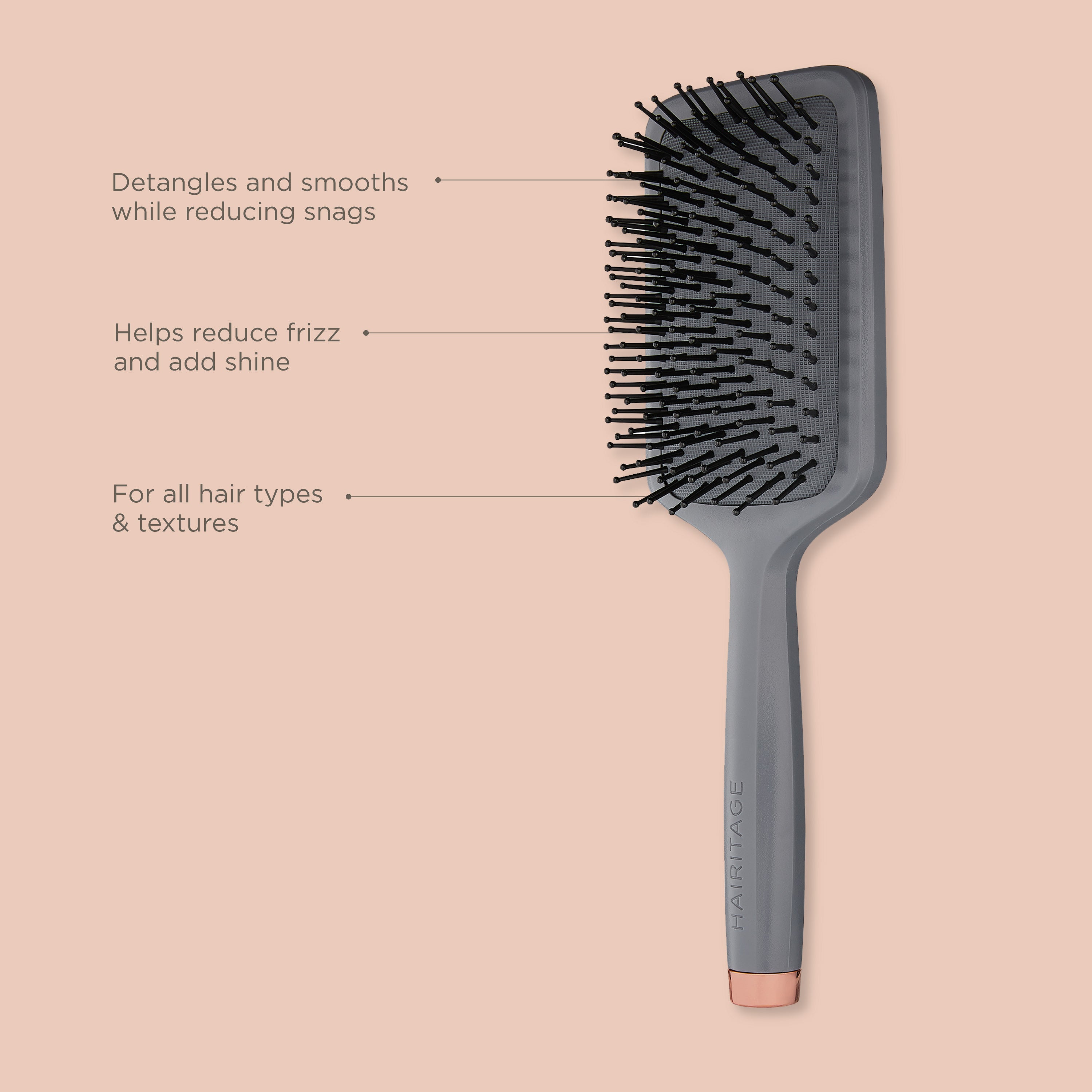 Our Brush It Off Paddle Brush is designed to glide though tangles with ease for less breakage on wet or dry hair. Perfect for detangling and smoothing all hair types and lengths – even extensions! Can also be used as a finishing brush after blow-drying or for a quick touch up to your favorite styles.