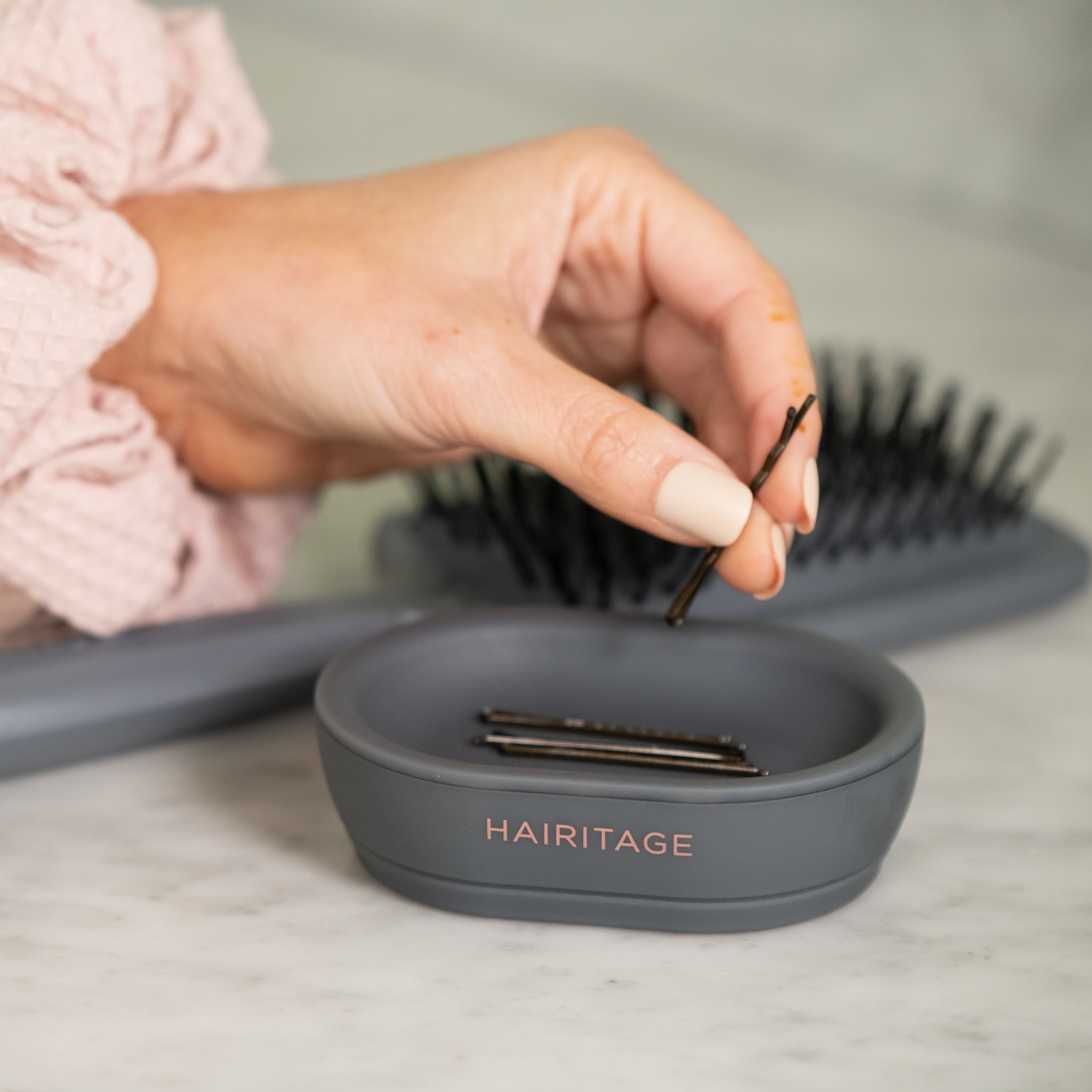 Our Hold Tight Hair Pin Magnet is the perfect answer to keeping your bobby pins organized! Its built-in magnet instantly catches and secures loose bobby pins in place. Does not include bobby pins.