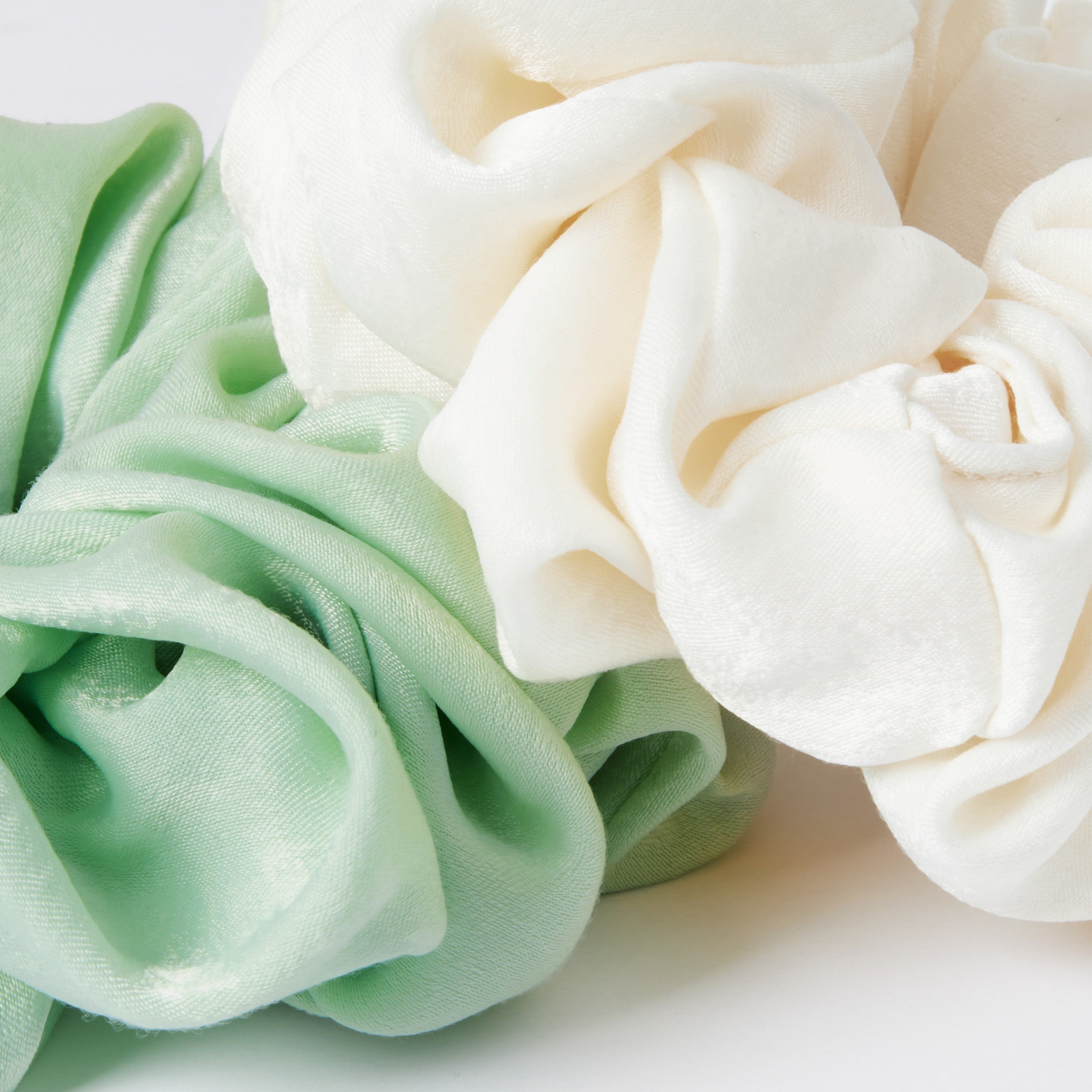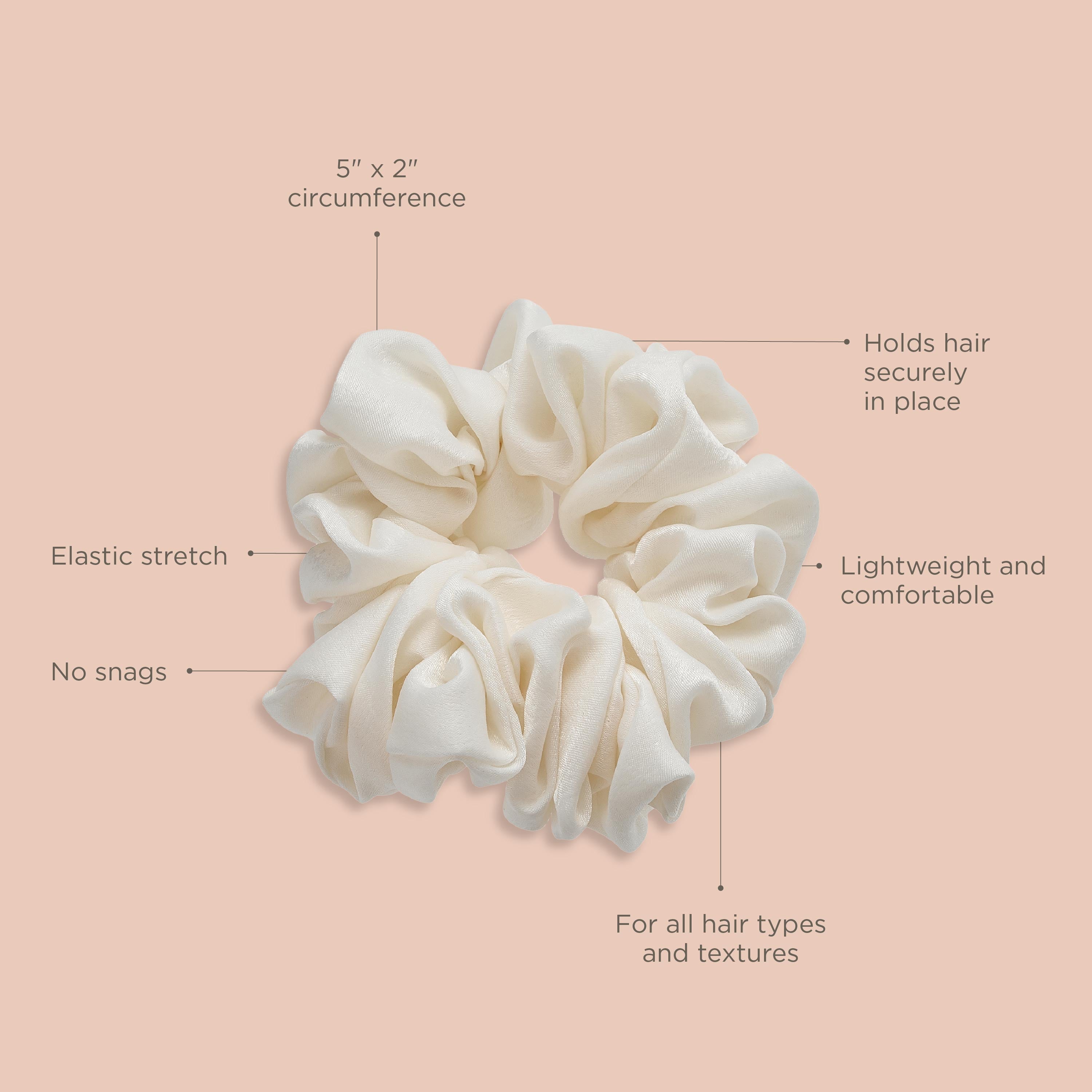 These satin hair scrunchies add a nice embellished touch to any ponytail. Crease free and hassle free. Perfect for the curly girl.
