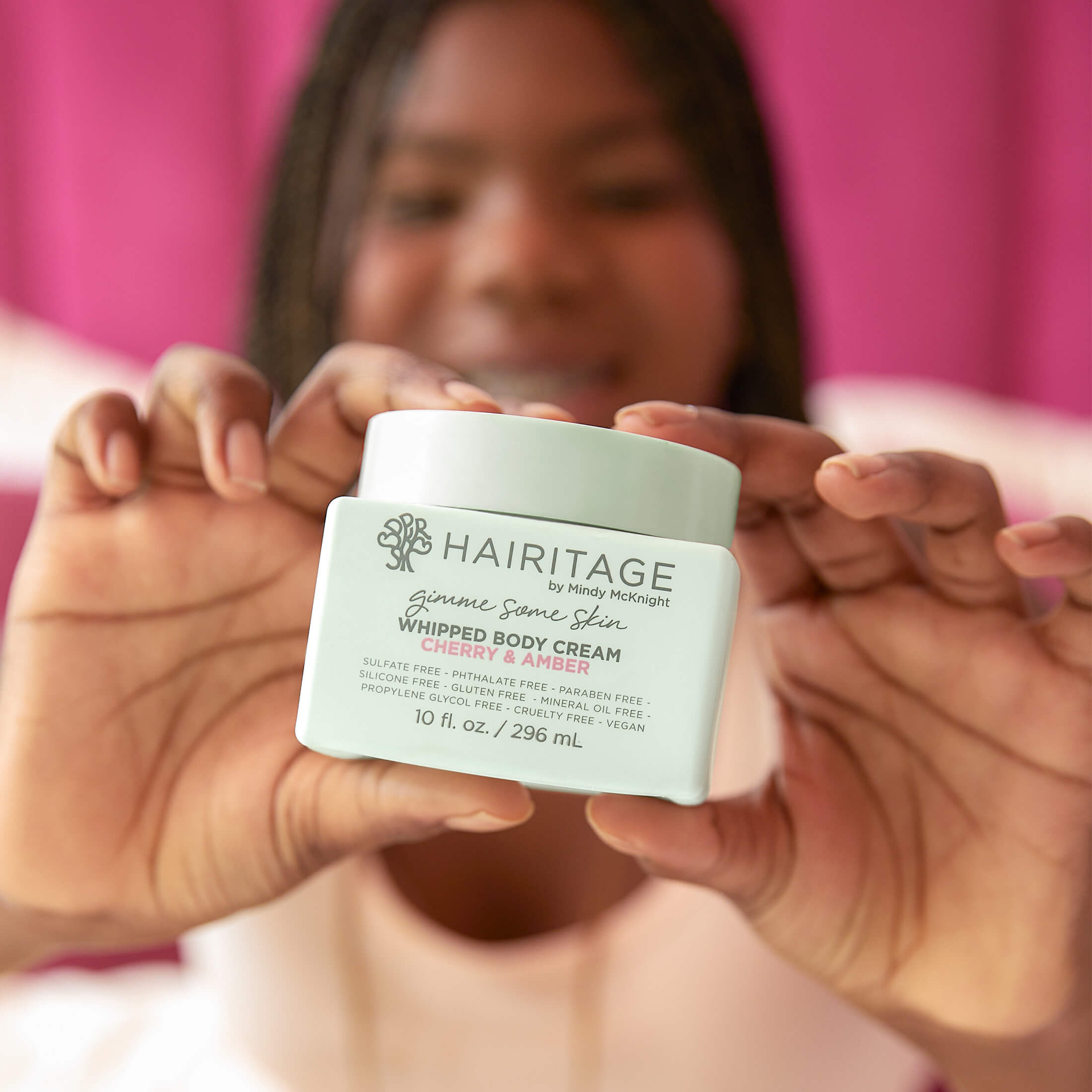 Formulated with Shea Butter and Coconut Oil, Hairitage Gimme Some Skin Whipped Body Cream helps soothe and moisturize skin while leaving it feeling nourished. Fragrance infused with Vetiver and Guaiac Wood essential oils. Family has always been a top priority, and we know it’s yours too! Hairitage has created bath & body products for all. DIVERSE SKIN NEEDS, infused with NATURALLY DERIVED INGREDIENTS and an EXTENSIVE NO NASTIES LIST for cleaner formulas, that are infused with AROMATHERAPY ESSENTIAL OILS to elevate daily rituals for you and your family. With the natural ingredients used in our formulas & fragrance, you might see the color of this product vary over time. But the performance will always be the same!