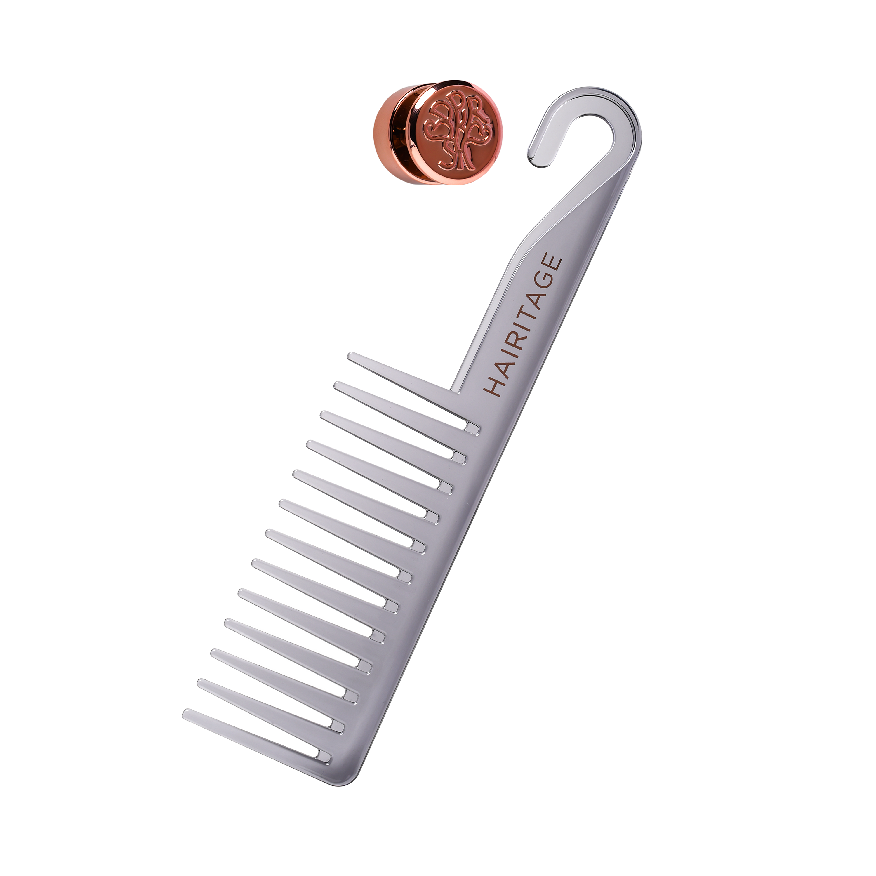 This comb was made with smooth, rounded teeth that are gentle on the scalp and evenly distribute product throughout wet hair. Designed with a hook and magnet this chic comb sticks to your shower wall doubling as a convenient comb and pretty décor. Recommended for all hair types & textures.
