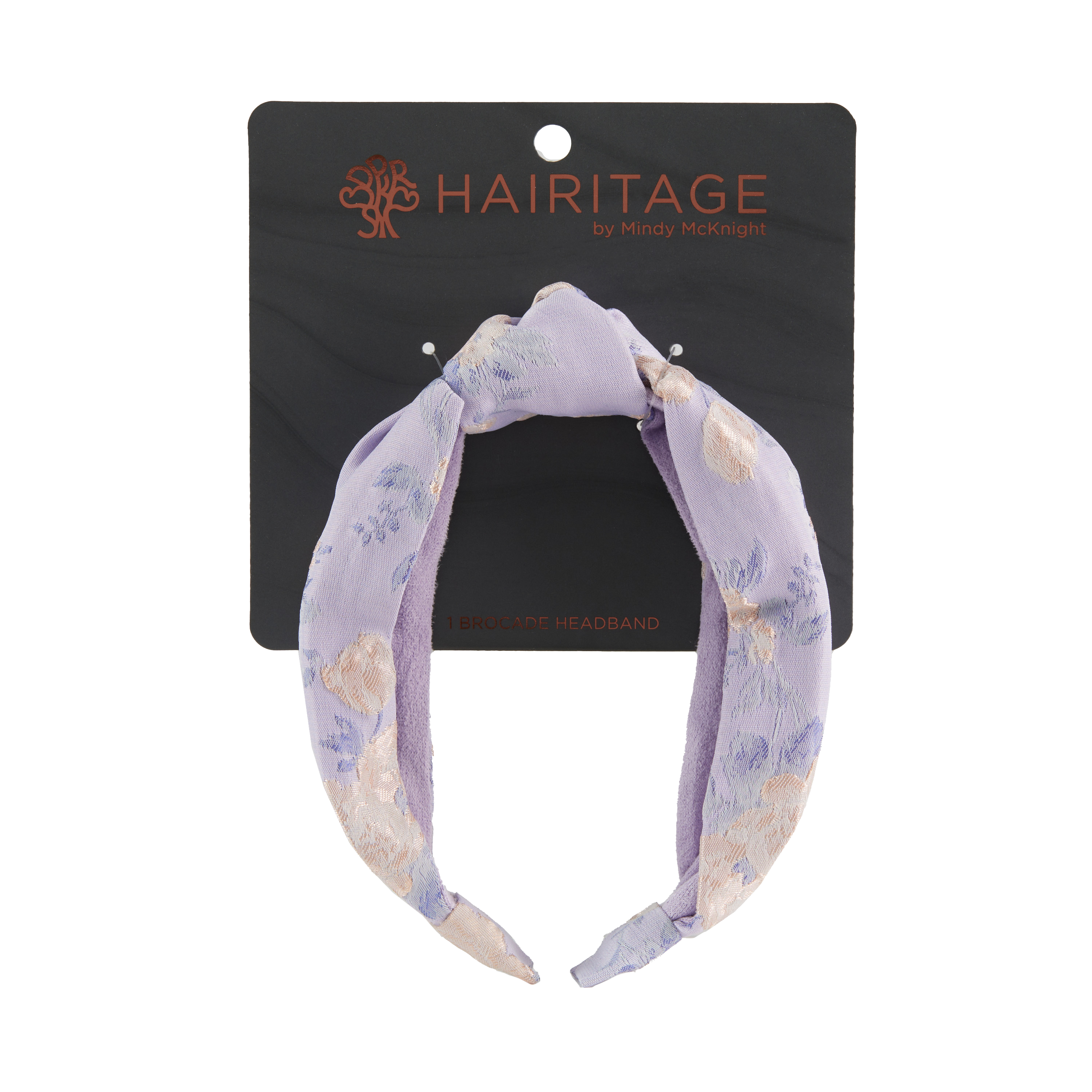 The luxe Hairitage by Mindy fabric Brocade Headband adds the "wow" factor to every look! Fit for a queen! Perfect for all hair types, textures, & lengths. Our Mission: Combining the trends of #EverydayElegance and #Nuhistorics this collection takes inspiration from the worlds of Bridgerton, The Gilded Age and Downtown Abbey. Theatrical and decadent fabrics including brocade, jacquard and satins in rich tones can be combined with modern casual corsets, hoodies and cargo shorts, giving the category a playful and feminine spin. Wallpaper stripes and florals on sumptuous fabrics work the theme into scrunchies and bows while pearl accents and colorful claw clips make easy work of a quick and chic chignon updo. This Hairitage collection will have you ready for the ball, or ballgame!