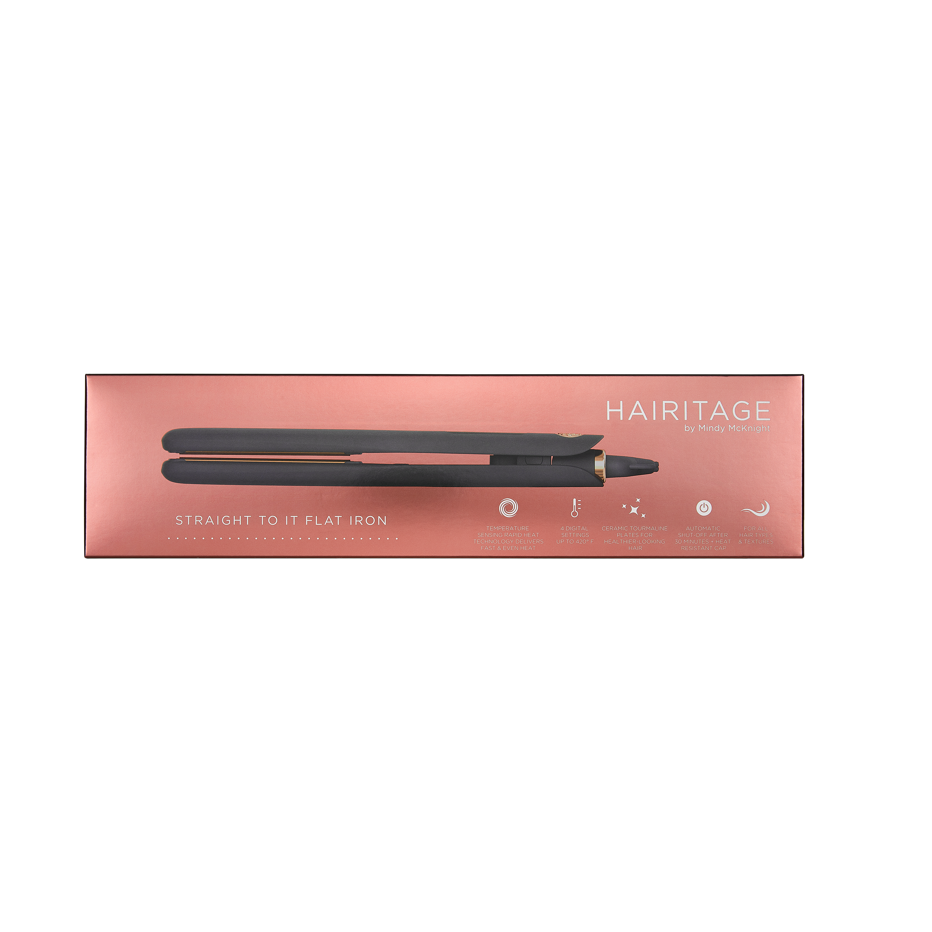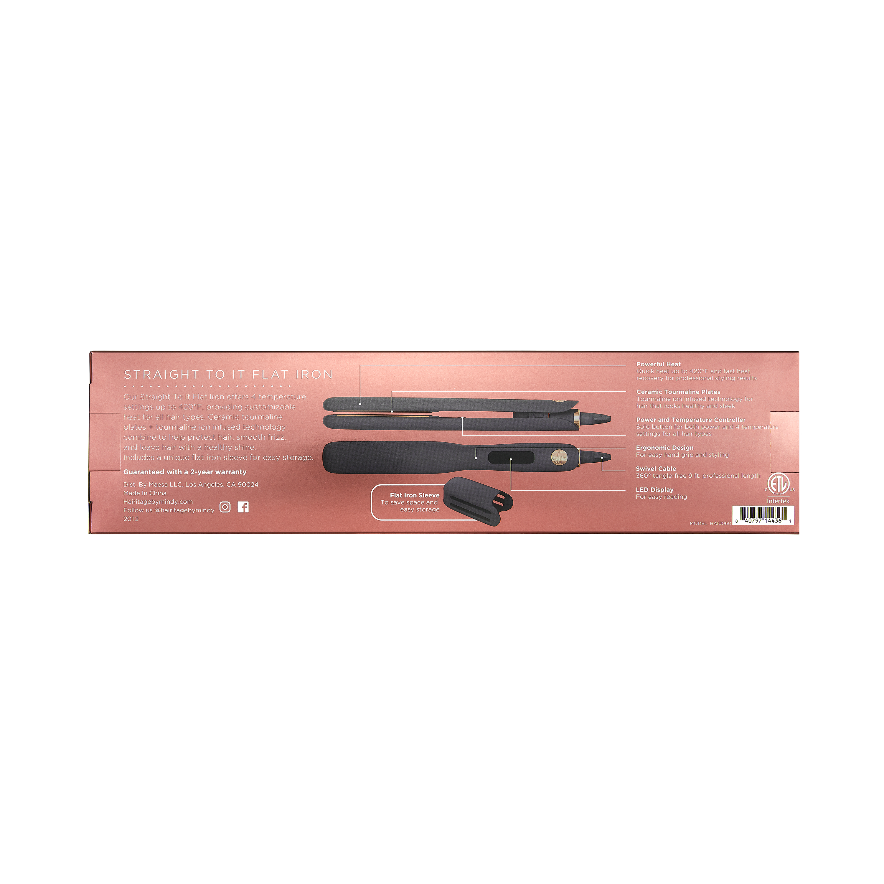 Our Straight To It Flat Iron offers 4 temperature settings up to 420° F, providing customizable heat for all hair types. Ceramic tourmaline plates + tourmaline ion infused technology combine to help protect hair, smooth frizz, and leave hair with a healthy shine. Includes a unique flat iron sleeve for easy storage. Guaranteed with a 2-year warranty. Recommended for hair types and textures 1A-4C.