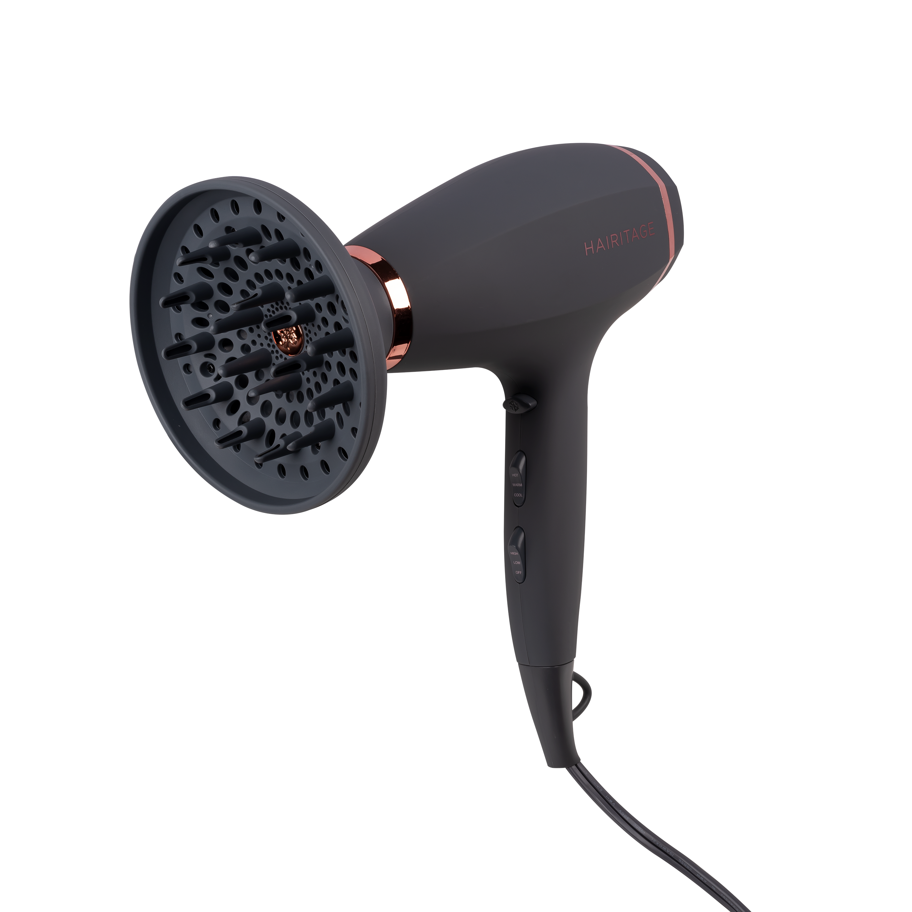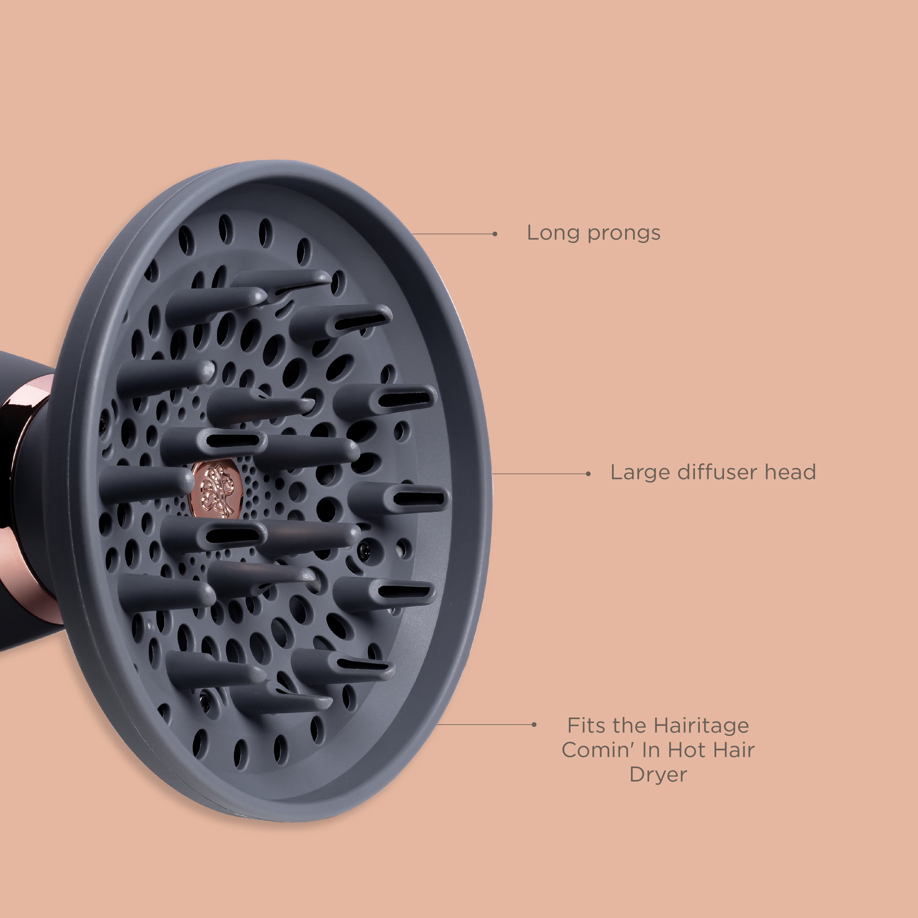 Pairing perfectly with the Hairitage Comin’ In Hot Hair Dryer, this diffuser is designed with long prongs and a large base. Your curls will be frizz-free, defined, and voluminous all while cutting back on dry time for healthier locks. Recommended for all hair types & textures.