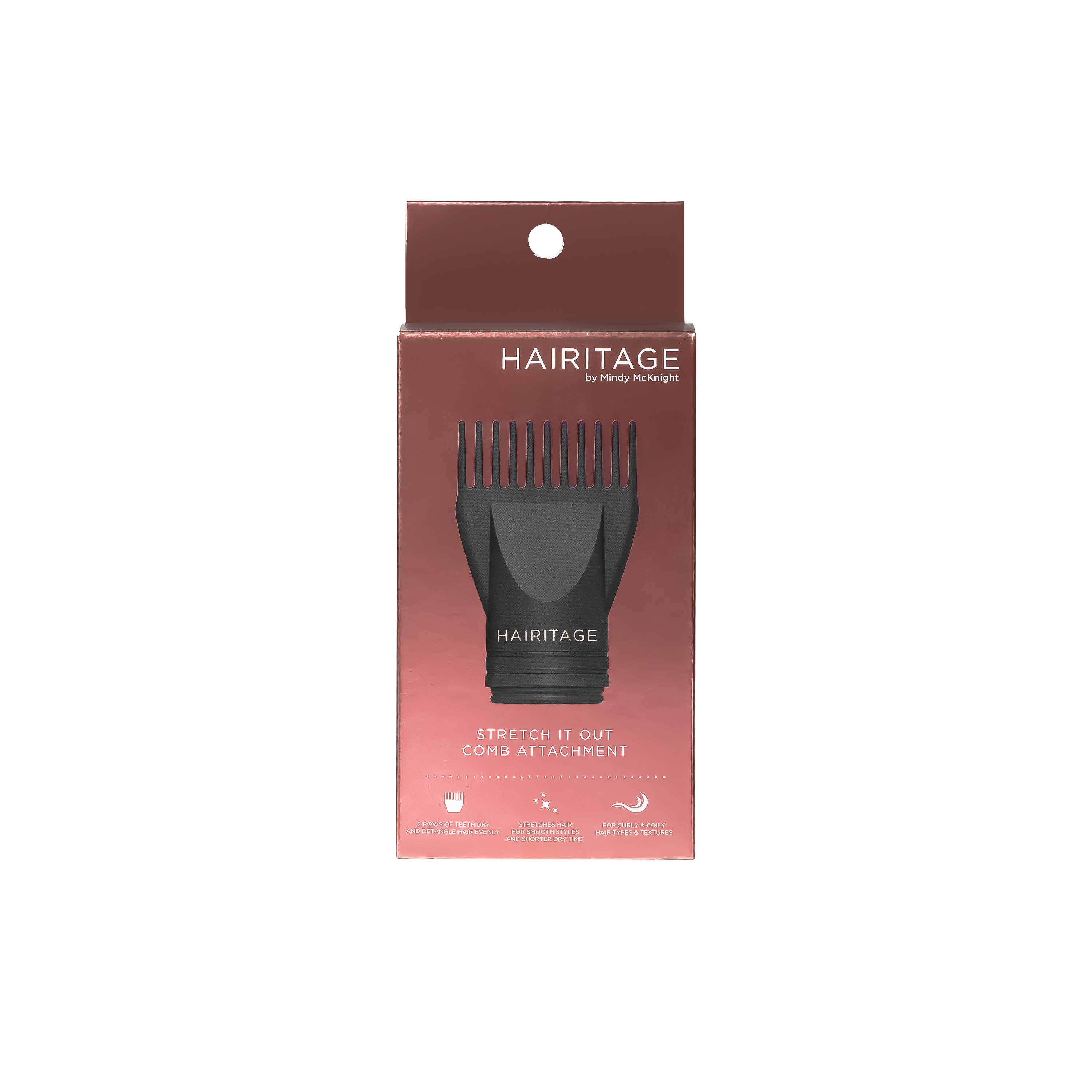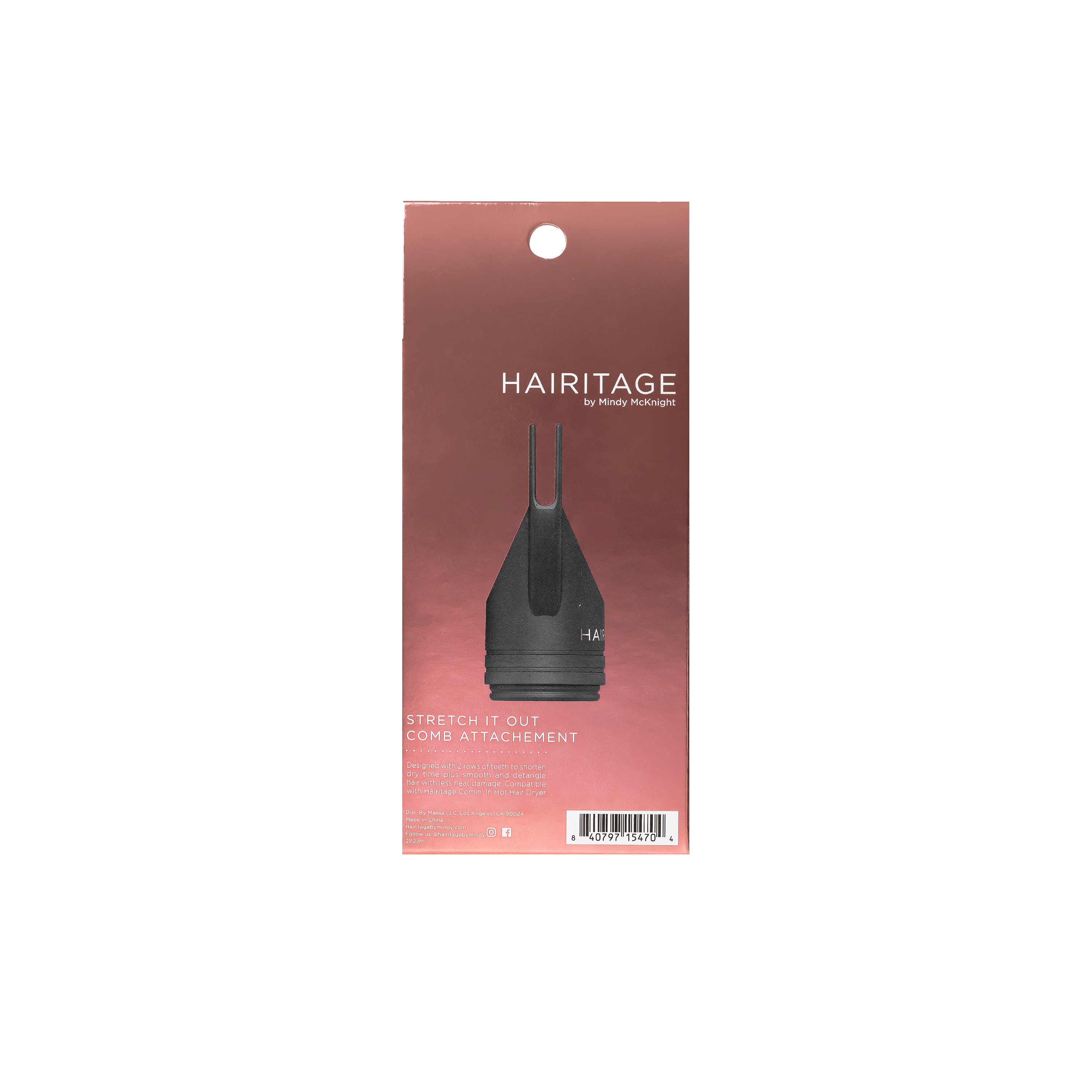 The Hairitage by Mindy Stretch It Out Comb Attachment is the perfect addition to your Hairitage Comin’ In Hot Hair Dryer when it comes to elongating your hair. The long, heat resistant teeth allow for you to get close to the root and slowly pull your hair through. This attachment gives concentrated, effective results while cutting back on dry time, leaving your hair long, luscious, and with less heat damage.