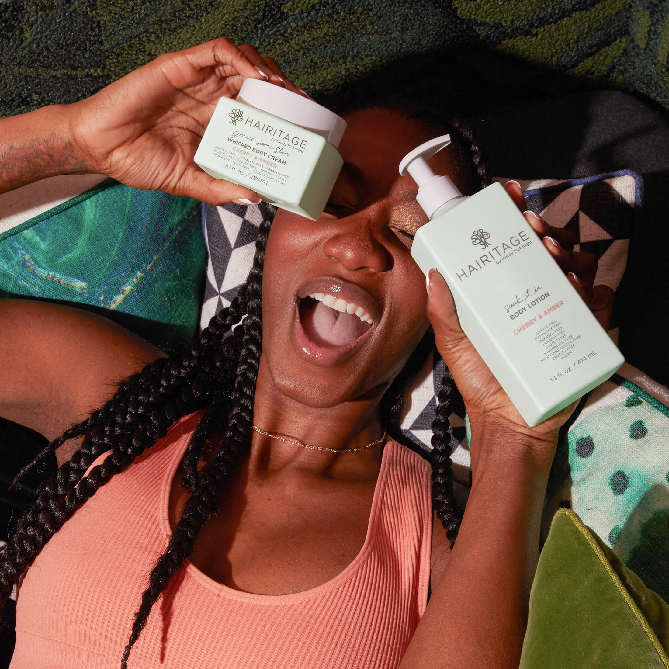 Formulated with Niacinamide and Jojoba Oil, Hairitage body lotion hydrates and leaves skin feeling replenished and healthy...