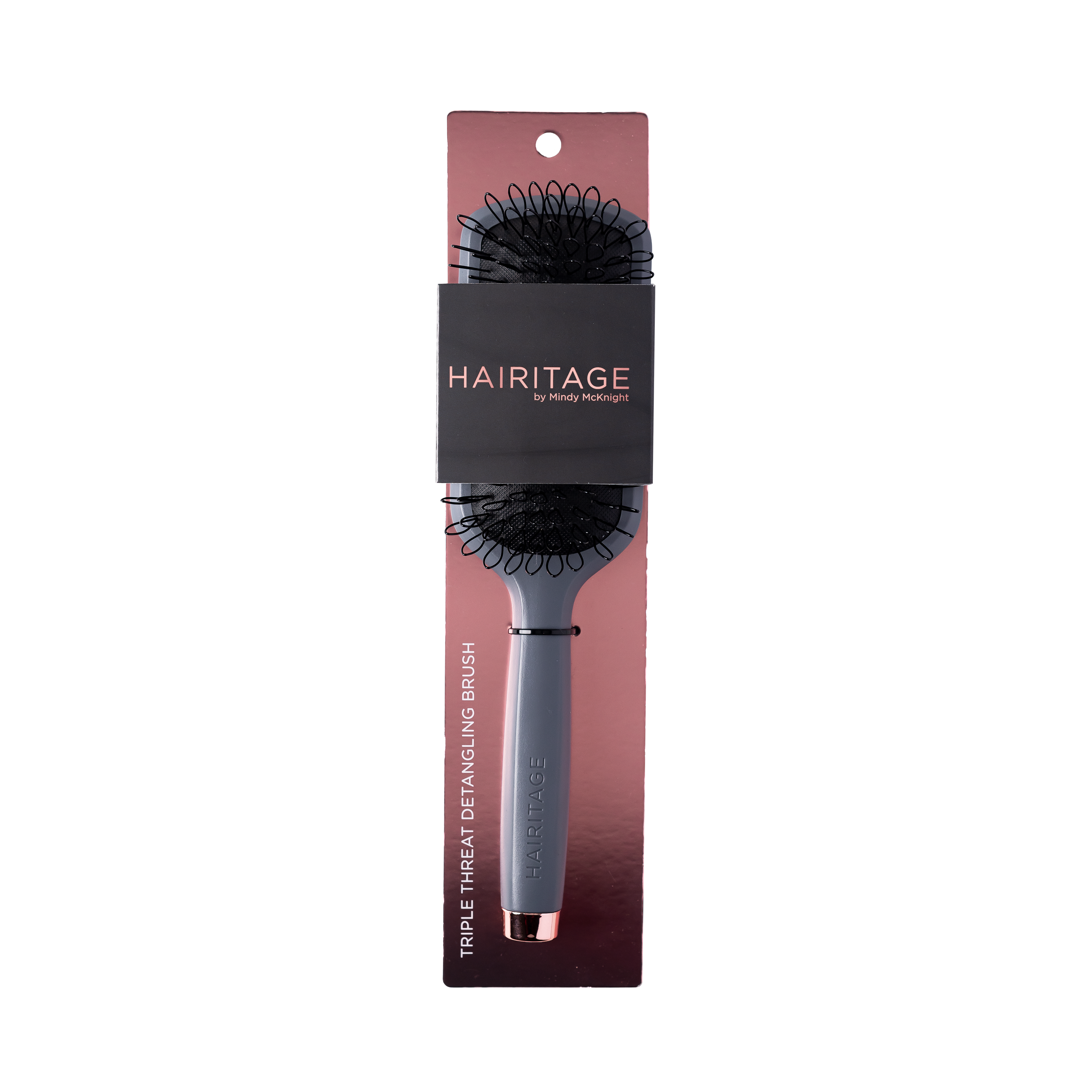 The Hairitage by Mindy Triple Threat Detangling Brush is exactly what it claims to be, three specialty brushes in one! This brush is designed with nylon looped bristles that gently brush through hair with ease. Built with everyone in mind, it can be used on both natural and synthetic hair, ideal for sensitive scalps, wigs, weaves and extensions. Recommended for all hair types & textures