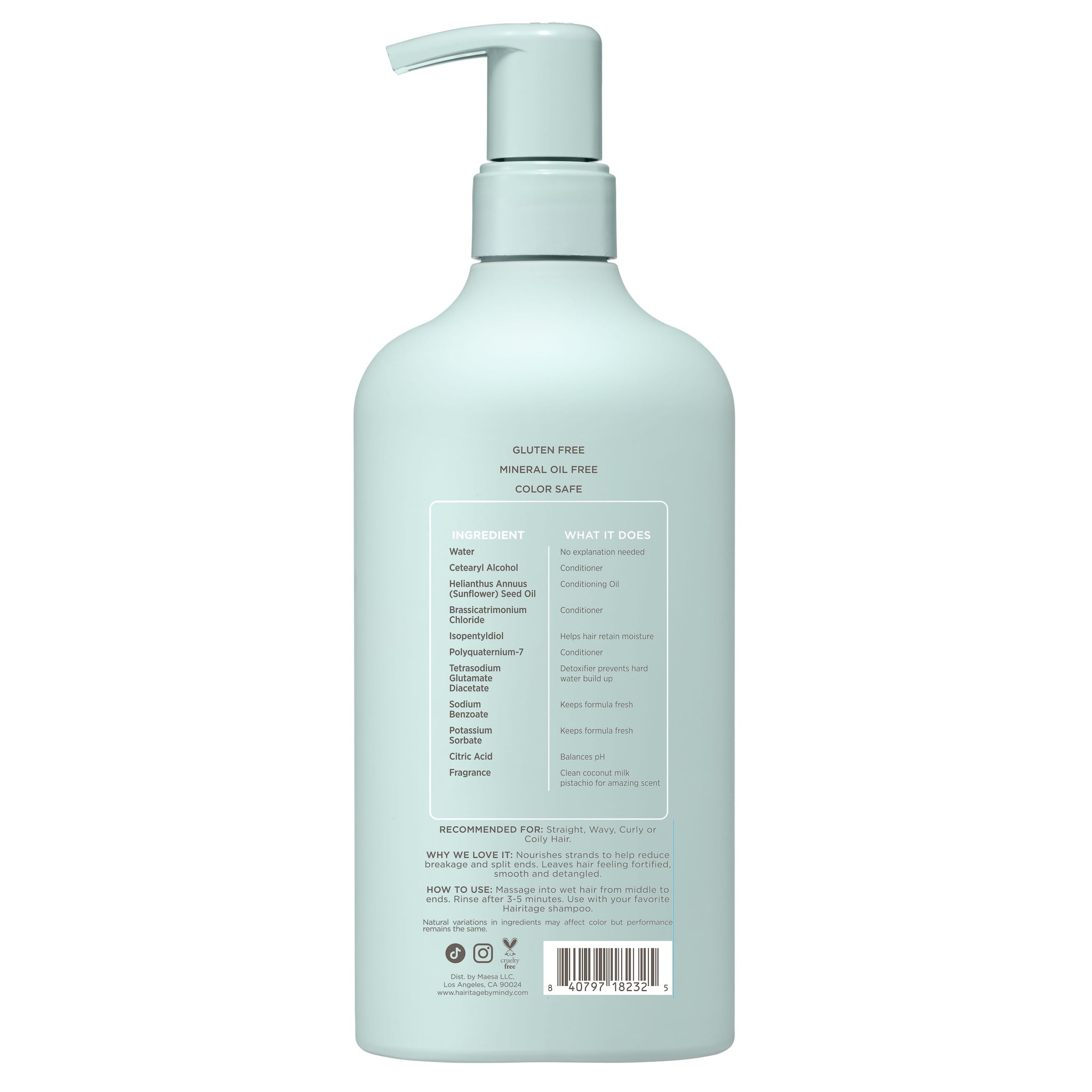Moisturizes without weighing down to leave hair fuller-looking, voluminous & detangled.