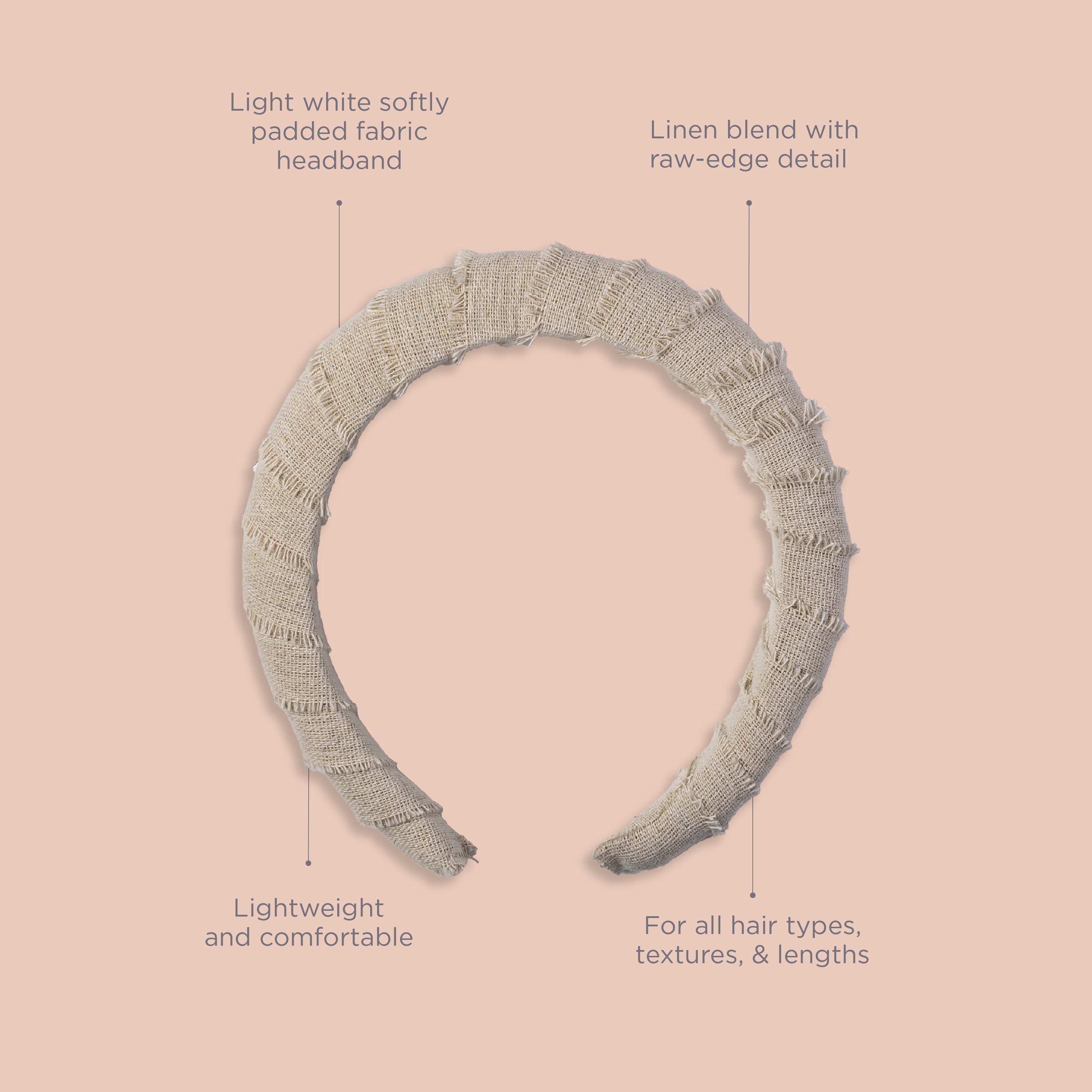 Hop on the celebrity-inspired headband trend with the Hairitage Take Me to the Beach Raw Edge Headband. This a lightweight, padded linen-blend headband is designed with raw linen edges for comfortable, all-day wear and gives any style a touch of wanderlust flair. Perfect for all hair types, textures, & lengths.