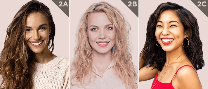 Loose spiral curls with a more defined “S” pattern from root to tip. The coarsest of Type 2 hair type